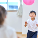 一緒に手を持ちながら後ろから前へ回す練習を行い、